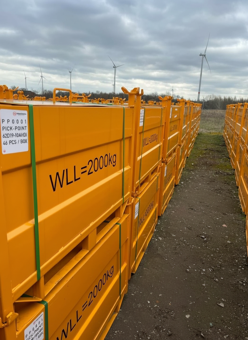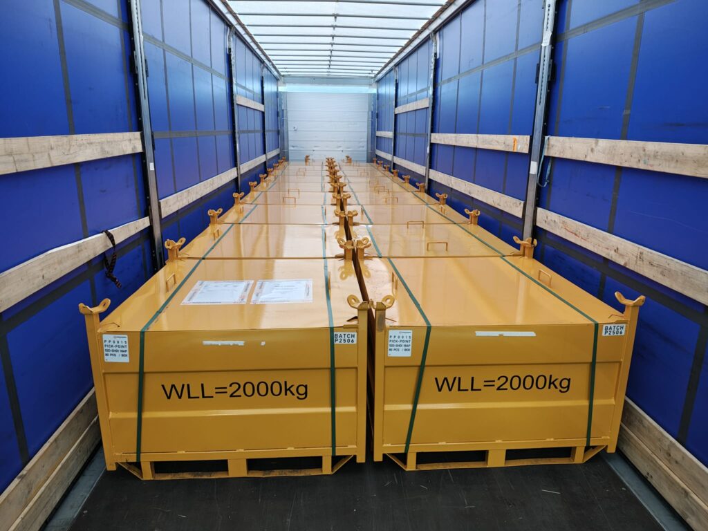 De D-Box maakt het mogelijk om slijtdelen in de fabriek efficiënt te stapelen. Dat bespaart ruimte in de container, verlaagt handlingkosten en vergroot de veiligheid.