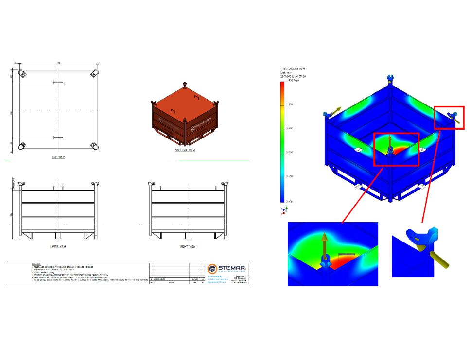 Op locatie kan de kist direct naar de juiste plek aan boord worden gehesen.
